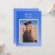 A unique card with a modern blue, gradient color scheme. Similar blue background on the back of the card containing invitation details. Suitable for a high school or college graduation. The photo and all text are easily changed with the template. If you have a website set up for the graduation and/or party (free sites online), type in your own URL where indicated and Zazzle will create your own QR code. Or you can delete it and rearrange the text. Selecting “Personalize this design” offers you several edit options to easily change the text (wording, plus type font, color, size, position) and to edit the design elements. You may also want to scroll down to the section “Transfer design to a product” for a few suggestions about other items this design can be used on.