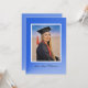 A unique card with a modern blue, gradient color scheme. Similar blue background on the back of the card containing details. Suitable for a high school or college graduation. The photo and all text are easily changed with the template. Selecting “Personalize this design” offers you several edit options to easily change the text (wording, plus type font, color, size, position) and to edit the design elements. You may also want to scroll down to the section “Transfer design to a product” for a few suggestions about other items this design can be used on.