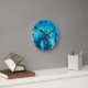 Steine, Kristalle und Mineralien sind ein zeitloser, trendiger Stil. Dieser Druck zeichnet sich durch ein nahes Bild eines lebendigen, blauen Gesteins aus, mit kleinen Kristallen in der Tasche. Eine helle türkisfarbene oder aqua-blaue Färbung mit einzigartigen Linien und Verband. Ein spielerischer, aber moderner und stilvoller Look. Niedliches Trendbright Blue Türkise Crystal Geode Round Clock