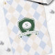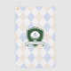 Modern Blue Pattern Green Golf Ball Name Monogram Golf Towel features a soft blue and beige argyle pattern that creates a timeless, preppy aesthetic with a charming feminine touch. The classic diamond layout forms a balanced and polished background, while the deep green crest-style emblem at the center adds contrast and structure. The monogram letter and personalized name banner layered within the shield give the design a refined, collegiate-inspired feel.