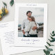 Dieses einfache, stilvolle moderne Foto Hochzeit danken Ihnen danken postcard Vorlage zeigt Ihre Namen in einem lebendigen Handschrift unter Ihrem Foto. Die Standardfarbe für den Text auf beiden Seiten ist ein elegantes, mittleres dunkles Blau. Sie können den Schriftart, die Zeichensetzung oder die Farbe ändern, die für verschiedene Textelemente dieses Designs auf der Vorder- und/oder Rückseite verwendet werden. Zum Beispiel, können Sie wählen, um eine andere Farbe für einige oder alle Text, oder ändern Sie die LIEBE UND DANKE Text über dem Foto, DANKE Sie oder etwas Anderes. Der Hintergrund auf beiden Seiten ist so transparent, dass die Farbe des Papiers gelassen werden kann. Sie können diesen Look jedoch ändern, indem Sie eine Farbe für den Hintergrund auf einer oder beiden Seiten auswählen. Wir haben ein paar Beispieltexte auf die Rückseite gelegt, damit Sie Ihre eigene Nachricht nach Belieben ersetzen können, aber bitte fühlen Sie sich dadurch nicht eingeschränkt. Wenn Sie es vorziehen, unseren Beispieltext vollständig zu löschen und den Teil der Rückmeldung vollständig leer behalten, sodass Sie stattdessen eine handschriftliche Notiz auf jeder Karte schreiben können, können Sie das tun. Oder Sie wollte, unseren Text durch Ihre eigene Danksagung und Ihr eigenes Schließen zu ersetzen und dann Ihre Namen zu signieren, wenn Sie die Karten erhalten. Sie können auch den Schriftart ändern und den Groß-Case-Look ändern, den wir hinzugefügt haben. Der Standard-Papiertyp, Matte, hat eine weiche Wärme und widersteht dem Schmieren, also ist es eine großartige Wahl, um Ihre eigene Nachricht zu schreiben. Sie können das hier bearbeiten und stattdessen "semi-glanz" auswählen. Bitte stellen Sie sicher, dass Sie auf jeden Fall unseren Sample/Platzhalter-Text auf beiden Seiten der Karte löschen, einschließlich der Rücksendeadresse und des Textes auf der Rückseite sowie des Textes und Fotos auf der Vorderseite. Nutzen Sie die intuitiven Designtools, Ihr Lieblings-Foto und Ihre Inspiration und machen Sie diese schicke Hochzeit dank Postcard einzigartig. Und durchstöbern Sie unsere Hochzeitsdankensammlung für mehr einfach elegante moderne Hochzeitskunst dank Kartendesigns in verschiedenen Formaten!