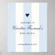 Modern Blue Stripe Heart Valentine Table Welcome Poster