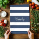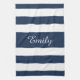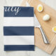 Modernes blau gestreiftes Muster Name Küchentuch.