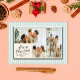 Kleine Creme und himmelblaue Streifen verleihen dieser drei Foto-Urlaubskarte ein modernes und elegantes Ambiente in Verbindung mit klassischen Schriftart. Der koordinierte Backer verfügt über eine längere, individuelle Nachricht von Feier und Aktualisierung für das Jahr, die perfekt für den Versand an Freunde und Familie ist.