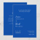 Embrace a sophisticated and eco-friendly approach to your wedding announcements with this striking blue invitation. The design features a prominent QR code, a modern essential that connects guests directly to your wedding website for comprehensive details. Share your love story, event schedule, and RSVP information effortlessly. This invitation is printed on sustainable materials, reflecting your commitment to the planet without compromising on style. The rich royal blue is a classic choice that exudes elegance and ensures your guests receive a memorable first impression.