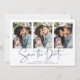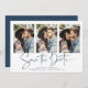 Moderne handgeschriebene Save the Date Multiple-Foto-Card in klassisch-weiß in einem eleganten Schriftart, der ein romantisches handgeschriebenes Gefühl hervorruft. Entwickelt um drei Ihrer bevorzugten Foto für zusätzliche Anpassungen zu verwenden. Fügen Sie einfach Ihre Namen und Daten für ein wirklich personalisiertes Design hinzu. Bitte kontaktieren Sie uns unter cedarandstring@gmail.com , wenn Sie Hilfe beim Design oder den passenden Produkten benötigen.
