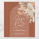 Moderne böhmische Terracotta Pampas Gras stilvolle Hochzeit speichern das Datum Einladung lustige moderne Wein-Label.
