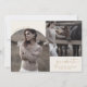Diese moderne Boho arch Creme Graduate 3 Foto Abschluss Ankündigung Karte ist die perfekte einfache High School oder Uni Grade Ankündigung. Das bohemianische Creme- und Golddesign besticht durch eine einzigartige, Vintage Schrift mit minimalistischem Stil. Personalisieren Sie die Vorderseite der Karte mit 2 Fotos, Ihrem Absolventen-Namen, Schule und das Jahr. Fügen Sie ein zusätzliches Foto und eine längere Meldung auf der Kartenrückseite ein.