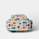 Auf dieser Tasche finden sich lustige Boho-Blätter, die sowohl für Groß als auch für Kleine attraktiv sind. Die Farben sind blau, gold, orange und dunkelmariniert auf weißem Hintergrund. In der Mitte befindet sich das dreifach schwarze Monogramm, das auf einem ovalen, schwarz und gold ausgekleideten Banner platziert ist. Bunt!