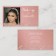 A chic and modern business card design for makeup artists and beauty professionals. This layout features a soft dusty blush pink background with leaf accents and elegant script typography. Perfect for salon owners, bridal makeup artists, and beauty consultants seeking a stylish, professional brand identity. Add your photo and business information for a personal touch.