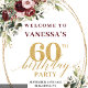 Modern Boho Burgundy Gold Greenery 60th Backdrop Wandteppich