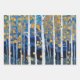 Schönes aritistisches Klimt-inspiriertes bohobisches Papiertaschentuch für die Geschenkverpackung. Schöne, helle blaue und goldene Sommeraussicht mit weißen und goldenen Colorado-Apfelbäumen. Ideal für Naturliebhaber.
