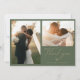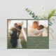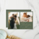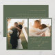Modernes boho Skript-Foto, moss grüne Hochzeit danke Ihnen Karte. Funktionen, 2 Foto Leerzeichen auf der Vorderseite, taupe Farbgrafik "Danke", Herzakzent, Template Textzeilen für Ihre Namen und personalisierte Nachricht.