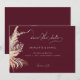 Ein elegantes, modernes boho blumenmoody bordeauxfarbenes Design mit einem skurrilen, modernen Save the Date Drehbuch macht die ideale Hochzeitsankündigung für Familie und Freunde. Einfache Anpassung an Ihre persönlichen Daten. Sehen Sie sich die passenden All In One Hochzeitseinladungen mit angehängten RSVP Karten in unserer Sammlung oben an.