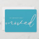 Sie haben sich also bewegt: kündigen Sie Ihre neue Zuhause-Adresse mit dieser fett bewegten Ankündigungskarte in fett und blau, mit modernen Kalligrafiebeschriften. Passen Sie es mit Ihrem eigenen Text auf der Rückseite an. Auch die Hintergrundfarbe ist anpassbar. Es gibt neue Anfänge und Erinnerungen in Ihrer neuen Zuhause!
