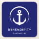 Ein schicker und moderner nautischer Untersetzer für Ihr Boot, der eine weiße Abbildung eines Ankeres auf marinebasischem Hintergrund zeigt. Personalisieren Sie mit dem Namen und der Lage Ihres Bootes in minimaler weißer Typografie.