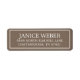 Modernes, braunes und weißes Rücksendelabel. Kontaktieren Sie uns für Hilfe bei der Anpassung oder der Anpassung von Produkten.