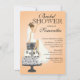 Beginnen Sie Ihr elegantes Brautparty mit unserer trendigen Brünetten Brautdusche mit einer klassischen Blonde Braut, die auf einem stilvollen, dreistöckigen, dreistöckigen Hochzeitskuchen-Set auf einem bunten, orangefarbenen Kürbis sitzt. Anpassen Sie einfach unsere Einladung mit Ihren Polterabend-Informationen und Sie sind alle Set zu gehen. ©JW Illustrationen