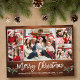 Modern Brush Script 5 Foto Familienfoto Collage Frohe Weihnachtspostkarte enthält Watercolor Christmas Holly Berries - Rustic Wood Print