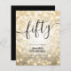 Elegante Glam Gold Glitzer Lights 50. Geburtstagsschreibereinladung mit funkelnden Lichtern und modernem Typografie-Script.