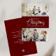 Tauchen Sie ein in den Urlaubssinn mit unserer modernen Burgundy Foto Collage Weihnachtskarte! Diese exquisite Karte präsentiert eine reiche bordeauxfarbene Kulisse, die eine ruhige und festliche Kulisse für eine Collage von zwei horizontalen Fotos schafft. Die Vorderseite zeigt ein elegantes "Frohe Weihnachten"-Skript und Platz für Ihren Familiennamen und Ihr Datum und fügt eine personalisierte Touch hinzu. Auf der Rückseite ist Platz für Ihre warmen Urlaubswünsche. Diese moderne und elegante Karte bietet Ihnen eine einzigartige Leinwand für Ihre Urlaubssegmente und ermöglicht Ihnen, die Freude und Wärme der Saison mit einer persönlichen Touch zu teilen. Feiern Sie diese festliche Saison mit der Weihnachtskarte des Burgund-Fotocollage Weihnachten!