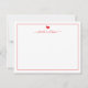 Modern red heart and calligraphy script font is featured on these flat stationery note cards. Easily personalize with a name or monogram.