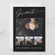 Vier Foto, trendige, moderne und elegante Abschluss-Ansichtskarten, mit Designelementen moderner Texte mit kalligrafischem Tintenskript. Die Fotos auf der Vorderseite der Karte werden mit einem feinen und minimalistischen Farbverlauf hervorgehoben. Die Kartenrückseite bietet personalisierte Textstellen für Informationen über Ihren Abschluss oder können gelöscht werden, wenn Sie eine Nachricht übergeben möchten. Schwarz & Weiß oder einfach den Hintergrund anpassen, um der Grundfarbe Ihrer Schule oder einer beliebigen Farbe Ihrer Wahl zu entsprechen. Ideal für Gymnasiasten, Unis und Studierende.