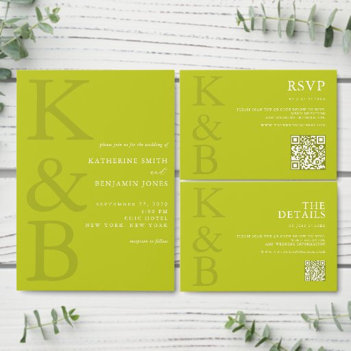 Modern Chartreuse Monogram Minimalist Wedding Einladung