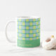 Chic and stylish coffee mug featuring a modern checker pattern in blue, green and lime, with a green color block at the bottom to personalize with your name, or add a recipient’s name and make it a thoughtful gift. The grid pattern is simple and minimal, blending easily into home kitchens, dorm rooms or office desks. Whether you’re sipping coffee during a quiet morning, enjoying tea during study sessions, or taking a break at work, this personalized mug brings a small moment of style to your everyday routine. Thanks for viewing an Eria Daisy Art design!