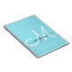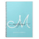 Modernes, trendiges, gürtelblaues und weißes personalisiertes mit Monogramm Spiralnotebook. Dieses schlichte, elegante Design zeichnet sich durch einen kursiven handgeschriebenen Namen mit grauen Wimpern und ein riesiges handgeschriebenes Monogramm-Skript in Weiß auf hellblau, aqua oder helltürkisfarbenem Hintergrund aus. Dieses hübsche Notizbuch ist ein ideales Geschenk für Geschäftsleute, berufliche, schulische, Geburtstagsparty, Hochzeiten und alle Party und Anlässe für Menschen, die mädchenhafte und moderne Stile mögen. Wenn Sie Hilfe oder Match-Artikel benötigen, kontaktieren Sie bitte den Designer.