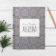 This great back-to-school notebook features modern girly chic geometric, geometrical mandala flower shape circle, lite pink and grey simple, simple minimalist simplistic design, modern mandala pattern, school class personalized custom name, office home organization planner, student college high school subject, artwork by laura Lacina, customize school class subject notebook.