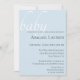 Moderne und schicke Typografie und diagonal weiße Stripe Babydusche Einladung. Anpassen von Text, Schriftart, Farbe und Größe. Die Hintergrundfarbe in sanftem Babyblau kann an Ihr Farbthema angepasst werden.