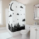 Moderner Stadtbild-Skyline-Duschvorhang mit weißen Sternen, Wolken und einem Halbmond.