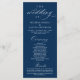 Modern Classy Elegant Wedding Ceremony Program card. It is designed with scroll accent that can be personalised with custom/ personalised text for your bridal party, ceremony details, memorial notes and thank you message, in Navy Blue.