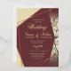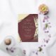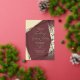 Eine moderne Hochzeitseinladung mit einem eleganten geometrischen Rahmen in schimmernder Goldfolie aus Rose. Die Hauptfarben sind Maron und Creme mit einem kunstvoll gepflegten Hintergrund. Rose Goldfolie schmückt die Hauptdetails mit der Erholung des Textes in einer passenden Cremefarbe. Calligraphie-Skript wird anmutig verwendet, um das Design zu vervollständigen.
