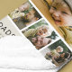 Surprise Dad with a modern photo collage blanket that showcases your favorite memories in a sleek strip layered over a larger photograph. Personalize with custom text for a one-of-a-kind Father's Day or birthday gift he will cherish. Shop now to give Dad a keepsake smile this year.