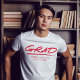 Klasse 2024 Abschluss T - Shirt mit "Grad" in rot handgeschriebenen Buchstaben mit gestrichelten Unterstreichen. Personalisieren Sie den modernen Abschluss T - Shirt, indem Sie den Namen und Abschluss des Absolventen Jahr.