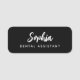 Create a warm yet professional impression with this stylish dental assistant name tag, featuring a modern black background and a beautiful script name design.