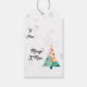 This modern Christmas tree gift tag is everything but traditional! Featuring a deep blue winter night background with snowflakes falling down, the bright colours of the stylized Christmas tree with its light dots make it stand out.