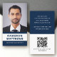 Weiß und dunkelblau oder kundenspezifisch, modernes, berufliches Design der Visitenkarte mit Vorlagenfeldern für Name, Firmenname/Firmentitel, Foto, QR-Code und Kontaktinformationen. Ändern Sie die Hintergrundfarbe, verschieben und verändern Sie Elemente mit dem Anpassungstool.