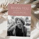 Moderne Abschluss Dankeschön-Karte mit "Danke" an der Spitze in weißer, moderner Schrift mit einer staubigen Rose an der Grenze zum Foto des Absolventen. Personalisieren Sie das Foto Dankeschön-Karte, indem Sie den Namen des Absolventen, die Schule und Abschluss Jahr. Auf der Rückseite der Karte ist Platz für Ihre getippte oder handgeschriebene Nachricht vorhanden.