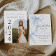 Modern Elegant Blue Bow Arch Photo Graduation Einladung