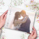 This Modern Elegant Chic Typography Photo wedding guest book features a delicate floral one-line art design with your names and wedding date in clean minimalist typography, paired with a romantic, whimsical handwritten script beneath your favorite photo, creating a timeless and personal keepsake.