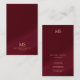 Gold Text Modern Professional Monogram Bordeaux Elegant Ocean / Oceania / Japan / Japanese / Australian Size Vertical Business Cards. Perfect for Real Estate Agents, Accountants, Realtors, Brokers, Attorneys, Lawyers, Corporate Professionals, Stylists, Architects, Engineers, Directors, Managers, Consultants, Designers, Teachers, Musicians, all professions.