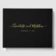 This modern wedding guest book features a simple black cover adorned with a stunning handwritten style script in foil. Inspired by contemporary calligraphy and hand lettering, the design feels sophisticated, chic, and beautifully minimal. Choose classic gold foil for a timeless luxury look or customize it with rose gold or silver foil to perfectly complement your wedding aesthetic.