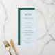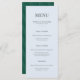 Elevate your reception tablescape with the Metropolitan Emerald wedding menu. This tall, sophisticated card is designed with a dual purpose: the front features a clean, minimalist layout in Glacial Ice blue with crisp Charcoal typography, ensuring your dinner courses are perfectly legible even in dim romantic lighting. The reverse side transforms the menu into a piece of table decor, featuring our signature Emerald Arch pattern—a striking midnight green Art Deco design with silver-look accents. When placed on a charger plate or tucked into a napkin, it adds an instant pop of architectural luxury to every seat.