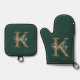 Modern Emerald Green Gold Monogram Script Ofenhandschuh & Topflappen-Set
