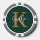 Modern Emerald Green Gold Monogram Script Pokerchips