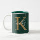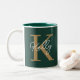 Modern Emerald Green Gold Monogram Script Zweifarbige Tasse