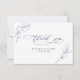 These thank you cards feature a crisp white background with deep navy blue text. Fine botanical eucalyptus leaves appear in simple line art, creating a fresh and elegant look. The design offers a modern and refined style that matches any navy blue and greenery wedding theme. It provides a calm and graceful way to thank your guests.
